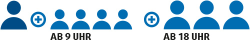 Montag bis Freitag: ab 9 Uhr bis zu 4 Kinder + ab 18 Uhr bis zu 3 Erwachsene